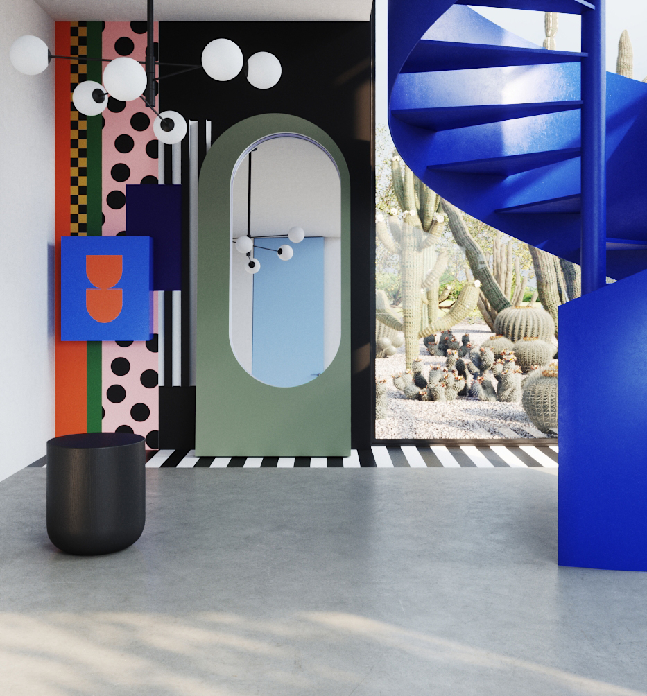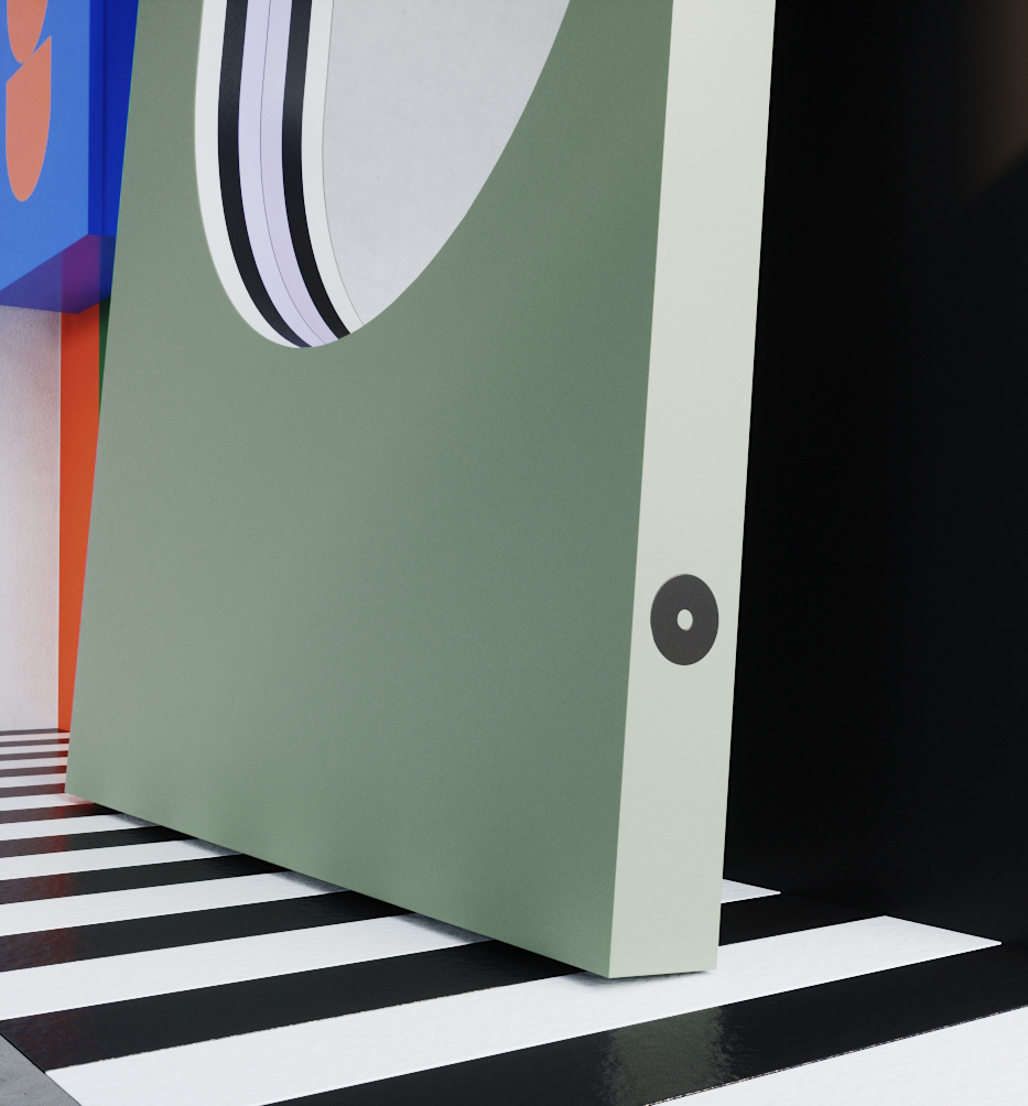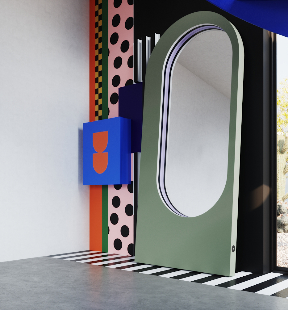 It will work in a bedroom, living room or hall. It will brighten up large and small interiors by reflecting light. Its modern shape is a combination of the minimalist functionalism of the Bauhaus style and the postmodern, energetic aesthetics of the Memphis Group. Its unusual form is determined by an irregular, geometric and spatial frame, finished with a detail in the form of graphic stripes in three colors that add energy and enhance the depth of the mirror. The colors we have chosen will give the interior a bold and attractive look & feel.