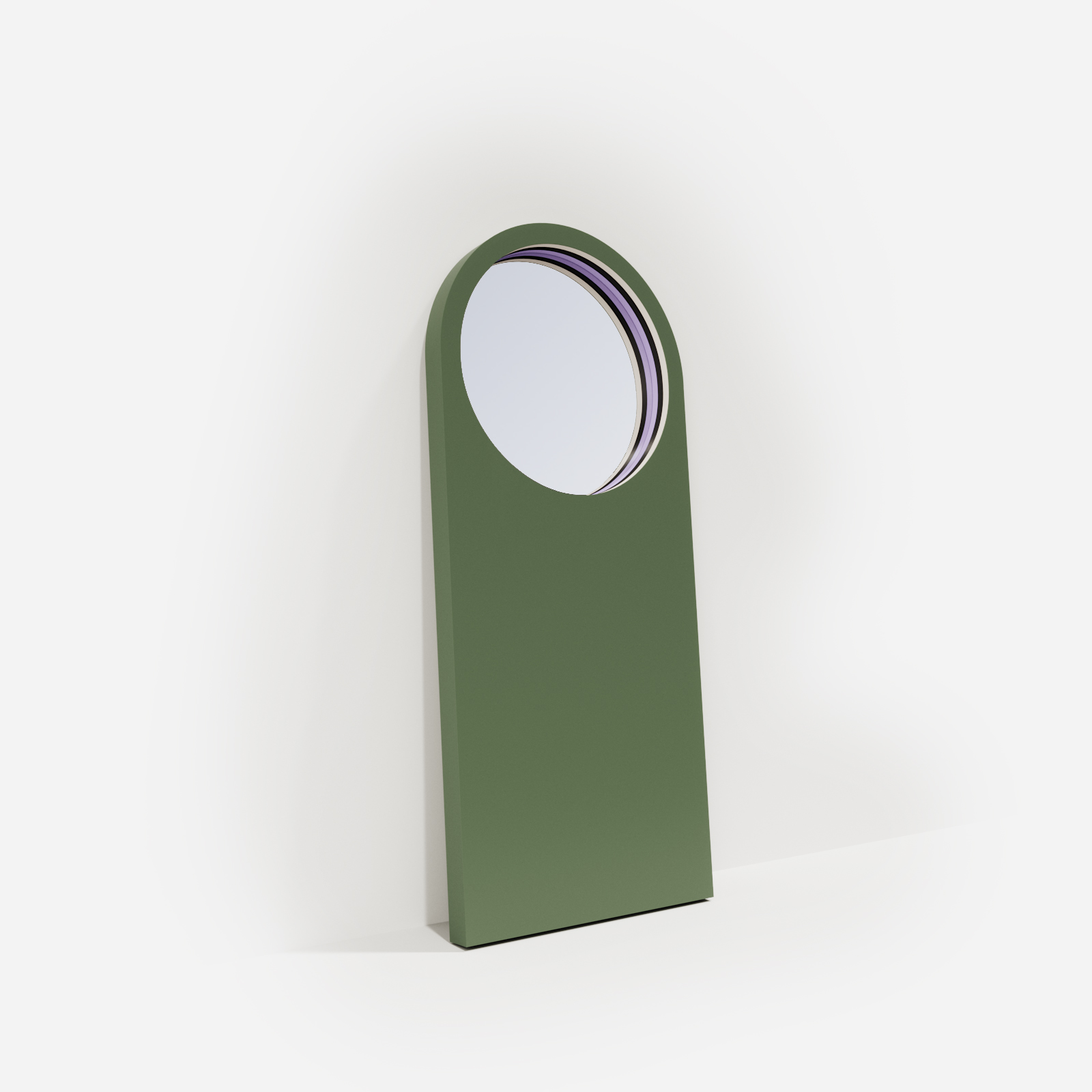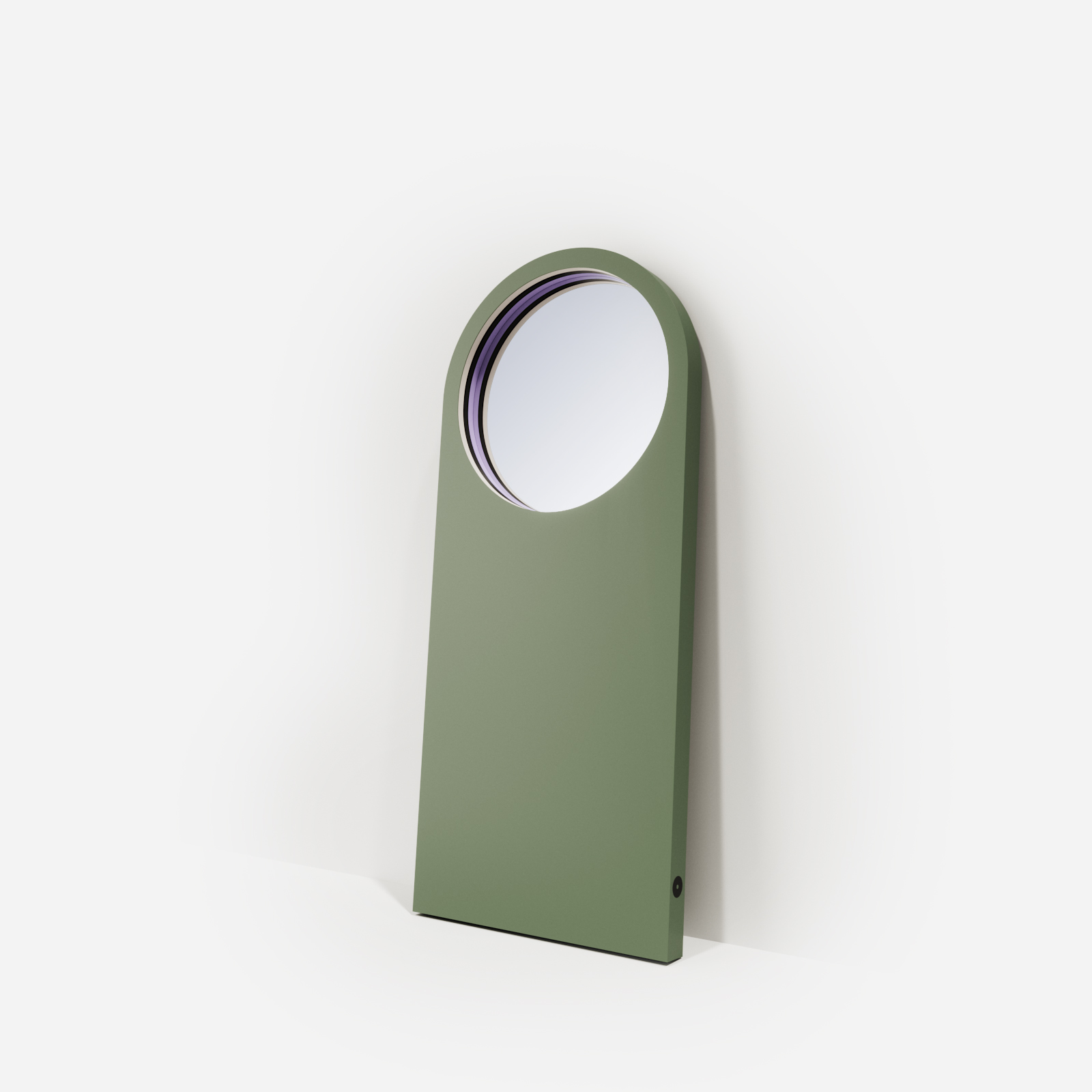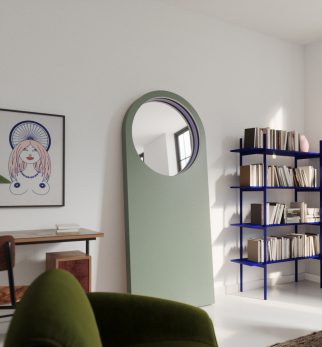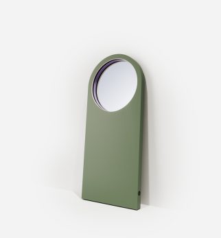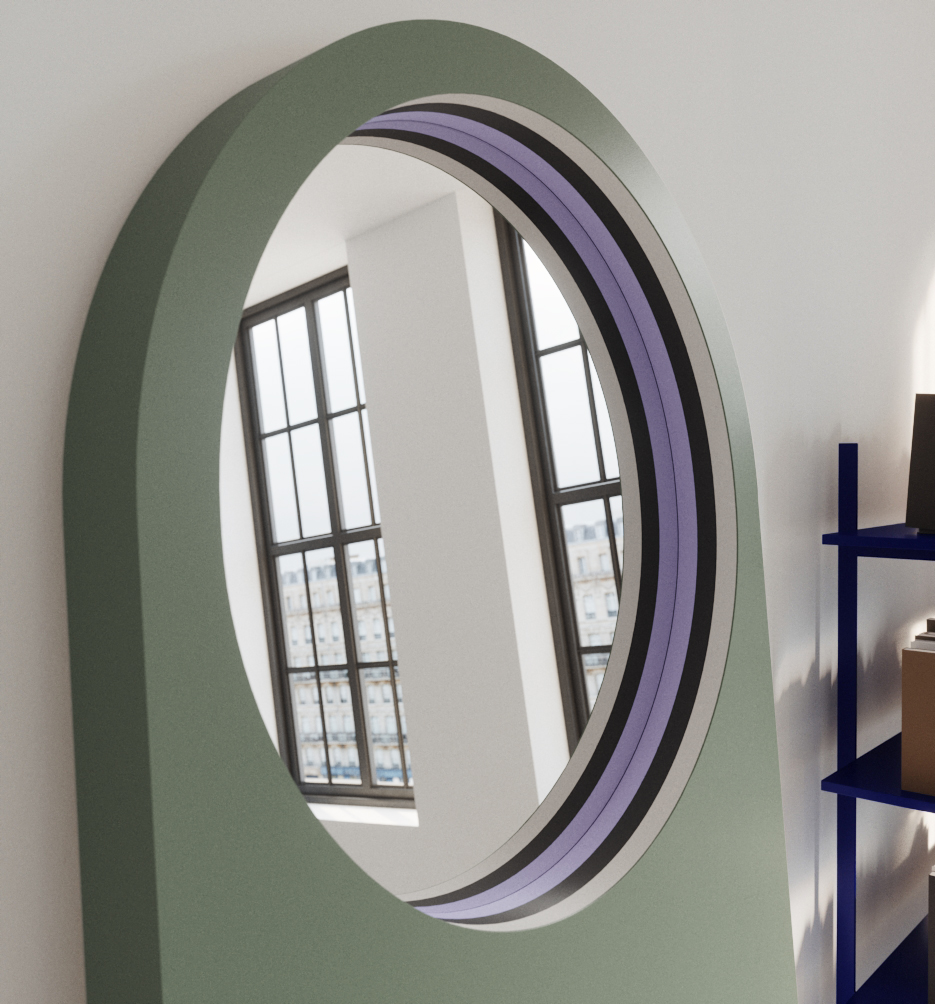 This funky, standing mirror is an unusual object that will visually enrich the interior, regardless of its character. We imagine it in small and large interiors – it will brighten them by adding light. We were inspired by the minimalism and function of the Bauhaus style and the postmodern aesthetics of the Memphis Group. The body of this mirror is a complex form of a spatial frame, finished with a detail in the form of graphic stripes in three colors that surprise, add energy and enhance the depth of the mirror. The colors we have chosen will give the interior a bold character.