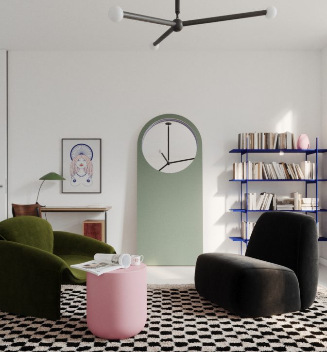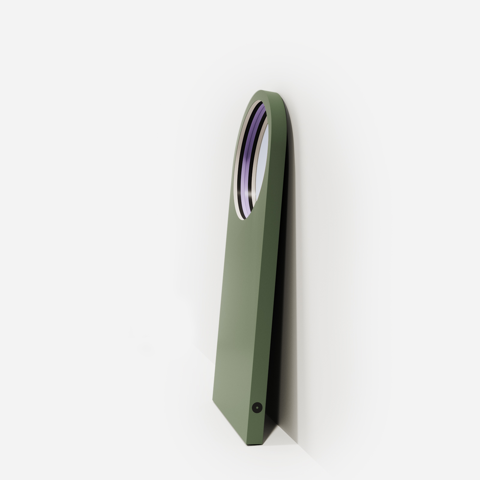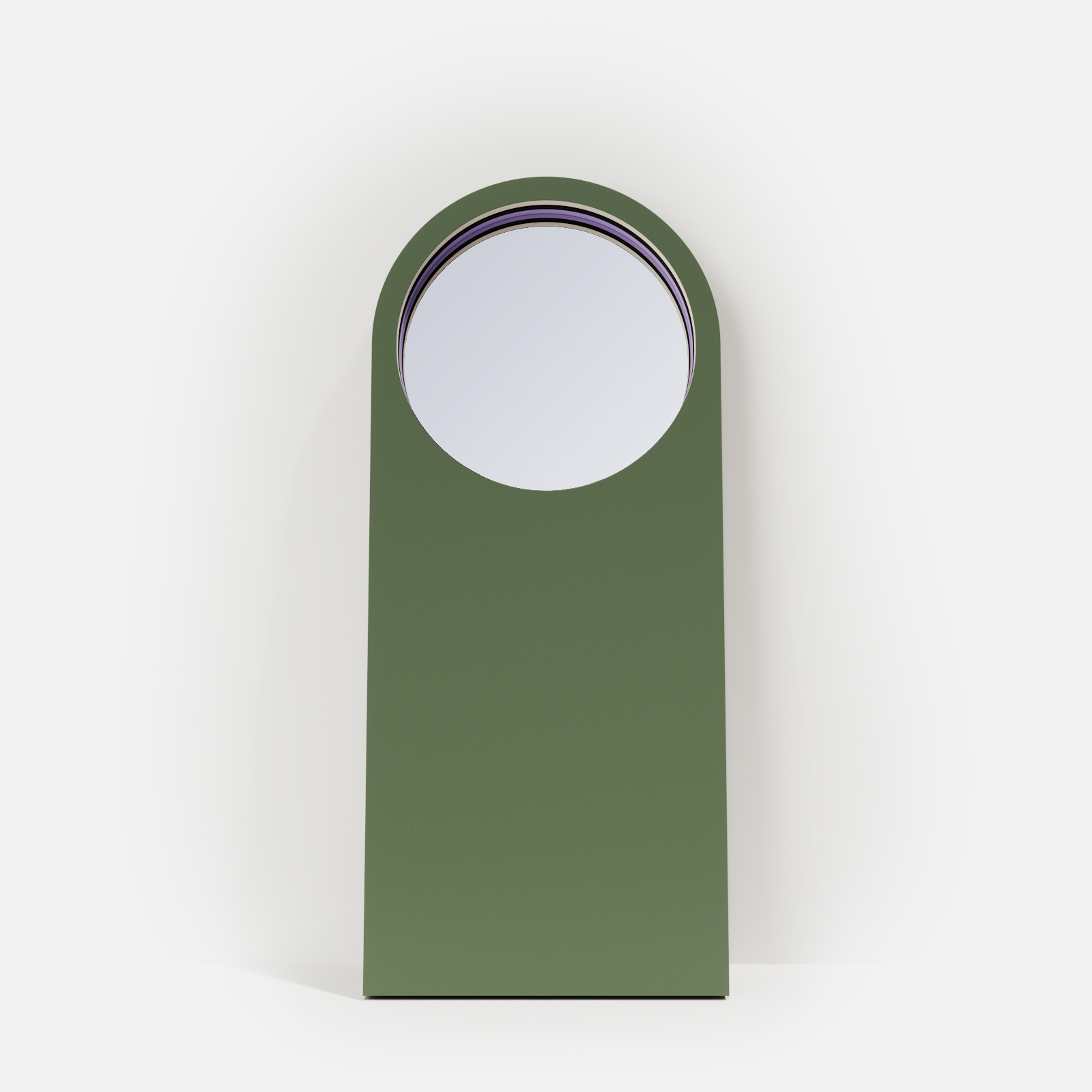 This funky, standing mirror is an unusual object that will visually enrich the interior, regardless of its character. We imagine it in small and large interiors – it will brighten them by adding light. We were inspired by the minimalism and function of the Bauhaus style and the postmodern aesthetics of the Memphis Group. The body of this mirror is a complex form of a spatial frame, finished with a detail in the form of graphic stripes in three colors that surprise, add energy and enhance the depth of the mirror. The colors we have chosen will give the interior a bold character.