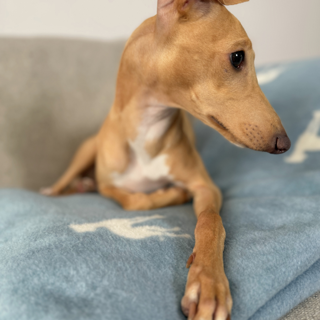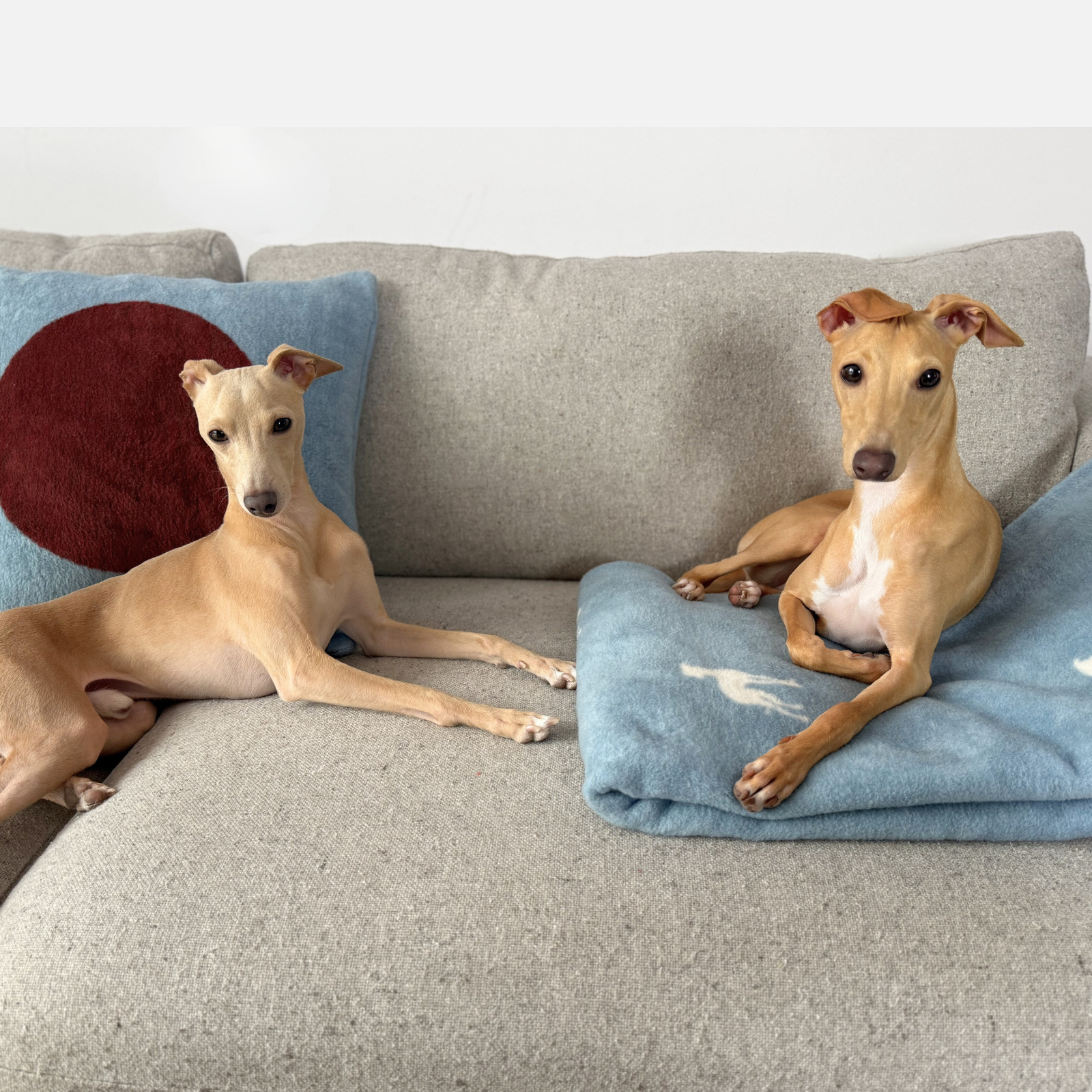 Wzór Blue Figa powstał z obserwacji Figi – znajomej charciczki specjalistki od miękkości. Jej naturalna potrzeba ciepła, sposób w jaki wtula się w tkaninę i spokojna, harmonijna obecność stały się punktem wyjścia dla projektu. Pixel pozował a my chcieliśmy zmultiplikować tę miękkość, tę delikatność. Chcieliśmy obietnicy wspaniałego doświadczenia, nie tylko wzoru. To design, który nie narzuca się — otula. Jest miękki w odbiorze, ale do zapamiętania na zawsze.