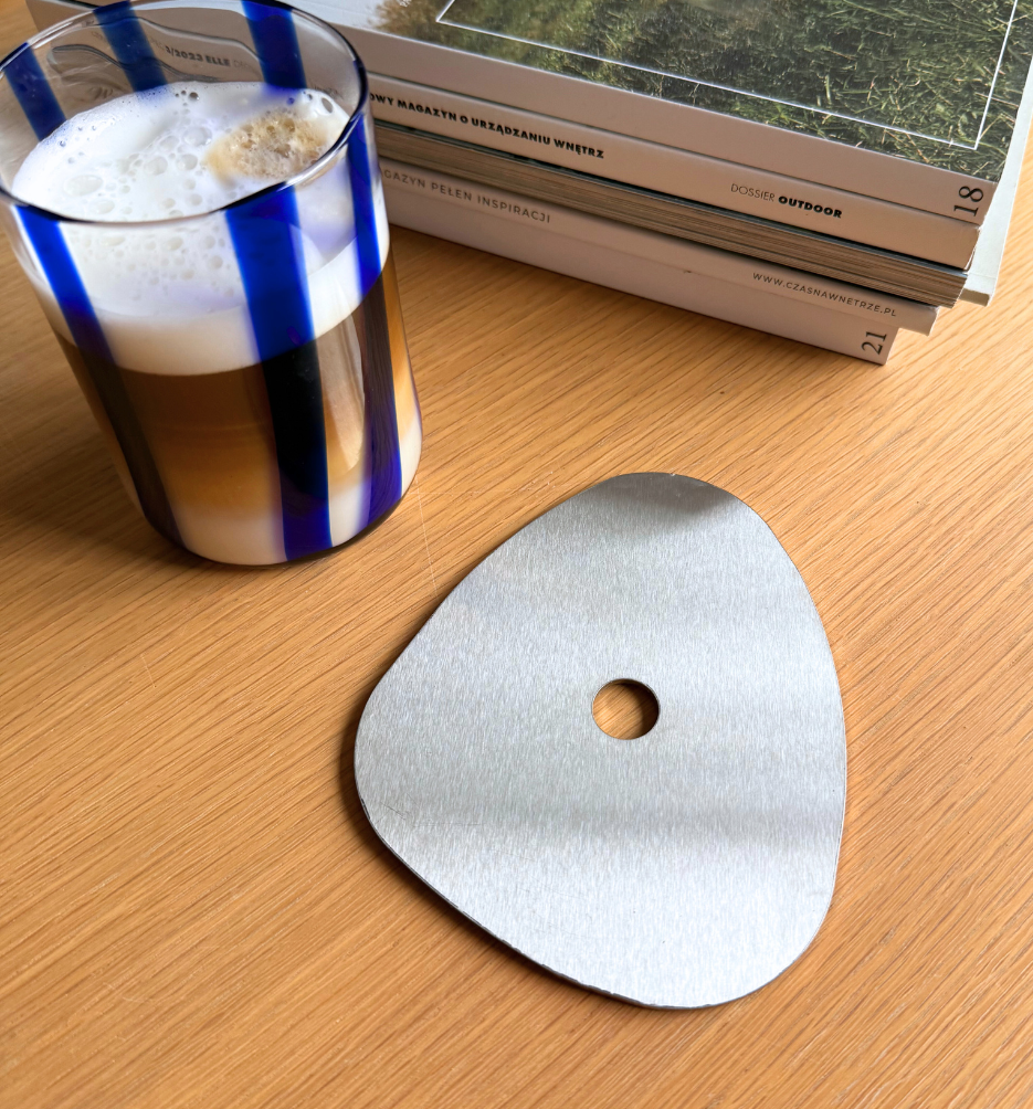 POND to przykład designu ze stali nierdzewnej, który łączy elegancję z funkcjonalnością, pracuje w tle codzienności. Są trwałe, odporne na wysoką temperaturę i łatwe w czyszczeniu, stworzone do regularnego użytkowania. Minimalistyczna forma sprawia, że każdy rytuał z napojem zyskuje estetyczną oprawę, a stół staje się przyjemniejszy w odbiorze. To podkładki dla osób, które wiedzą, że dobry design zaczyna się od detalu i że nawet podkładka pod kubek może być świadomym wyborem estetycznym.