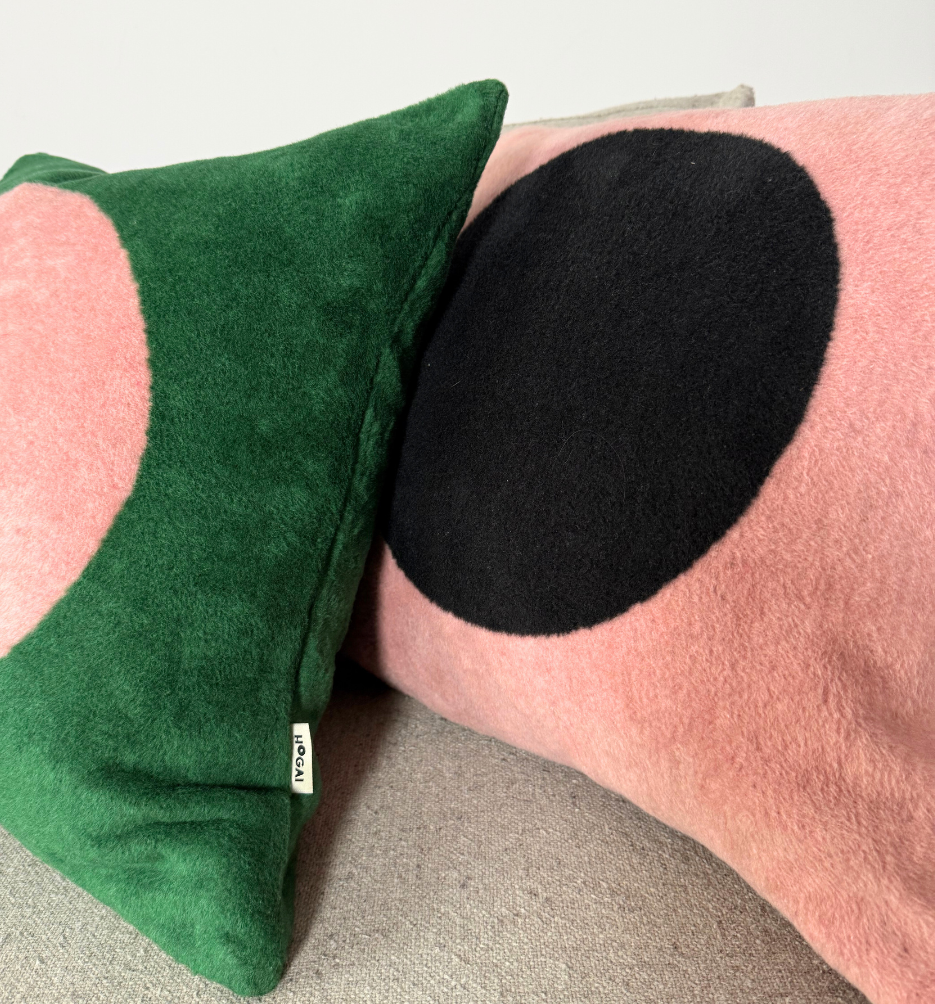 Nowe poduszki POINT HOGAI to gra formy i faktury. Mocny rytm graficznych punktów tworzy wyrazisty język, który ożywa w dotyku. Wykonane z miękkiej, puchatej tkaniny żakardowej, przyciągają dłonie i wzrok – wprowadzając do wnętrza przytulność i harmonię.