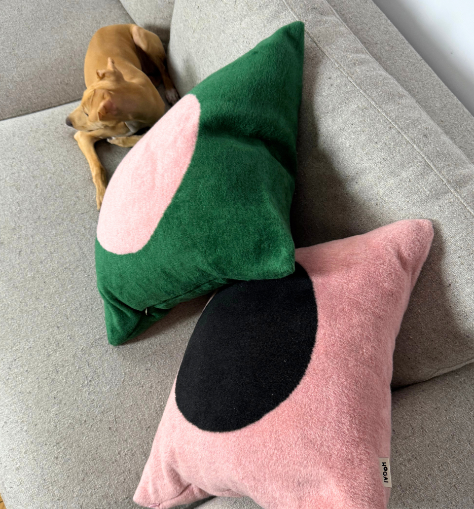 POINT GREEN to głęboki, ciemny zielony kontra subtelny, przygaszony róż, które tworzą duet pełen harmonii i spokoju. Zieleń stabilizuje i koi, róż wnosi delikatność i miękkość. Razem działają jak dopamine home decor, poprawiając nastrój i nadając wnętrzu subtelnej energii. Idealna poduszka do salonu, sypialni lub strefy relaksu.