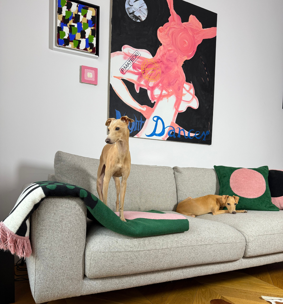 POINT to projekt, który równoważy geometrię i miękkość, kolor i ciszę, buduje porządek. To nie wzór, to gest. Mocna kropka na kontrastowym tle działa jak znak graficzny – odważny, ale czysty.