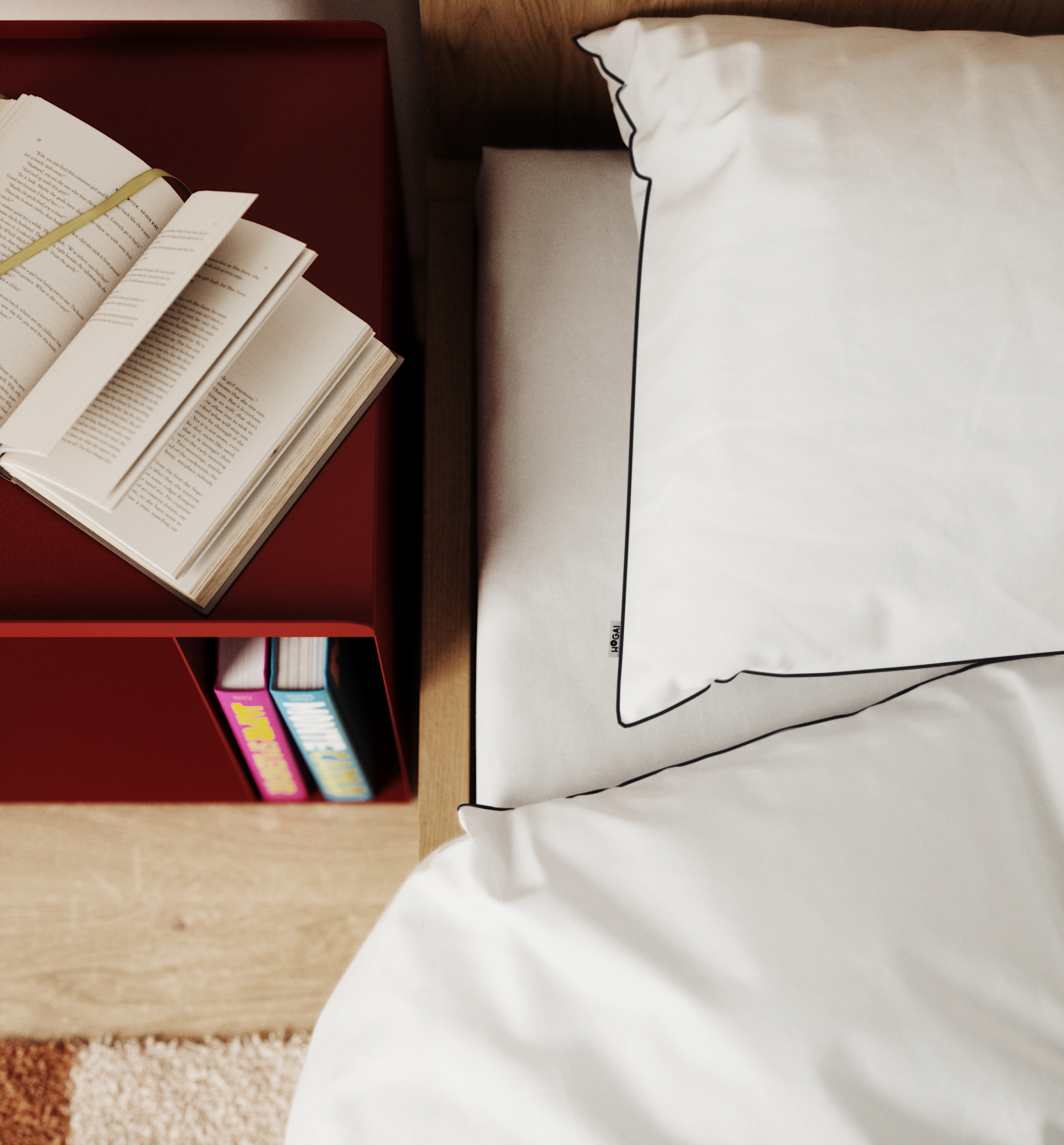 W HOGAI wierzymy w kolor. Ale najbardziej kochamy białą pościel. Czystą, subtelną, świeżą. Tę, która pachnie dobrym snem i przestrzenią. Taką, która nigdy się nie nudzi — bo wystarczy odrobina koloru, by nadać jej charakter. W pościeli DRIFTER doprawiliśmy biel subtelną lamówką — 14 wariantów kolorystycznych, które mówią szeptem, ale mówią wiele. To mały gest, który odmienia wszystko. Dzięki niemu możesz tworzyć kompozycje: z poduszkami, kocami, narzutami. Twój sen. Twoja scena.