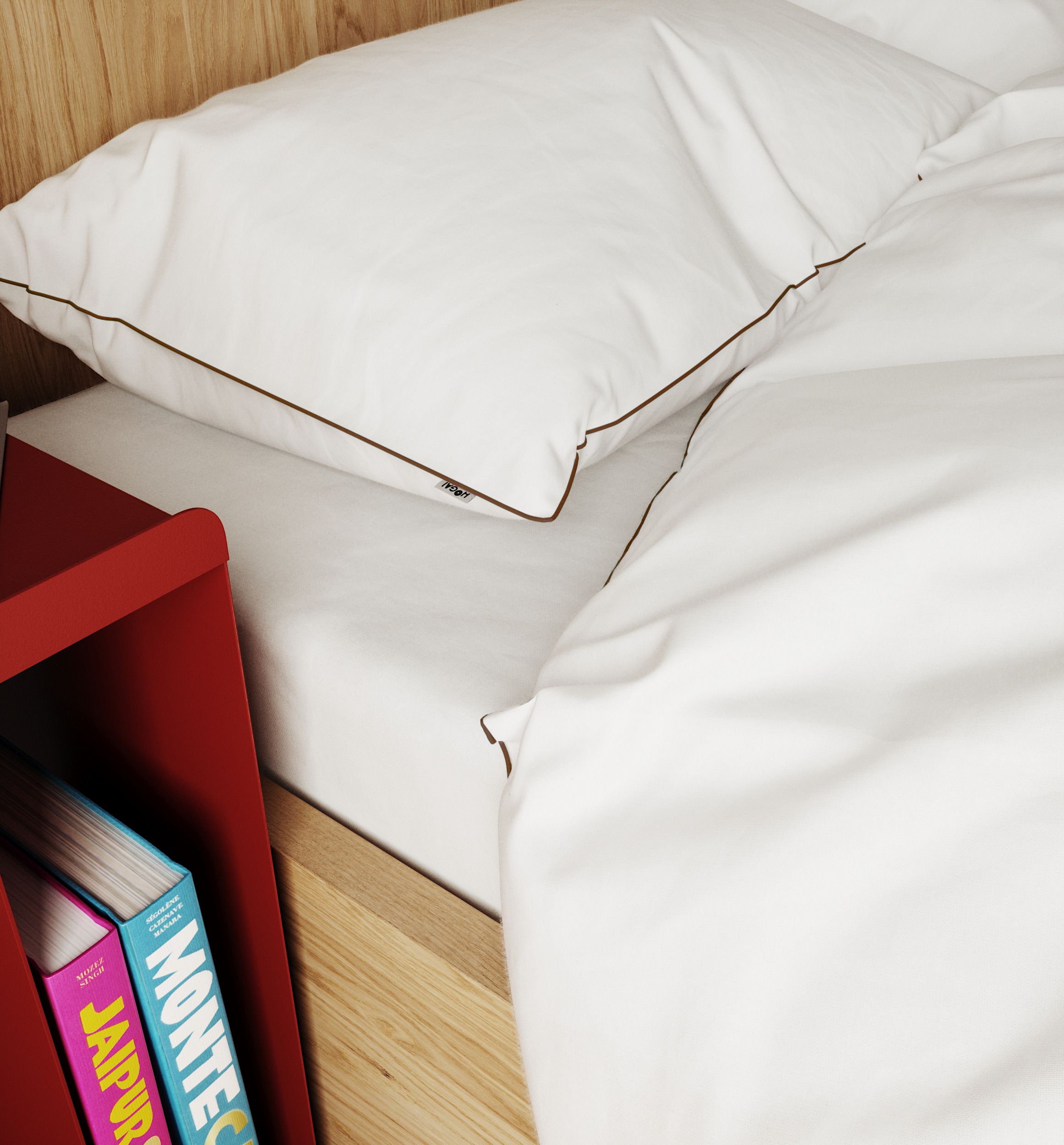 W HOGAI wierzymy w kolor. Ale najbardziej kochamy białą pościel. Czystą, subtelną, świeżą. Tę, która pachnie dobrym snem i przestrzenią. Taką, która nigdy się nie nudzi — bo wystarczy odrobina koloru, by nadać jej charakter. W pościeli DRIFTER doprawiliśmy biel subtelną lamówką — 14 wariantów kolorystycznych, które mówią szeptem, ale mówią wiele. To mały gest, który odmienia wszystko. Dzięki niemu możesz tworzyć kompozycje: z poduszkami, kocami, narzutami. Twój sen. Twoja scena.