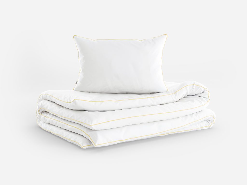 Pościel Drifter BUTTER YELLOW – poszwa na kołdrę BIAŁA Z KREMOWO ŻÓŁTĄ LAMÓWKĄ WYBIERZ ROZMIAR